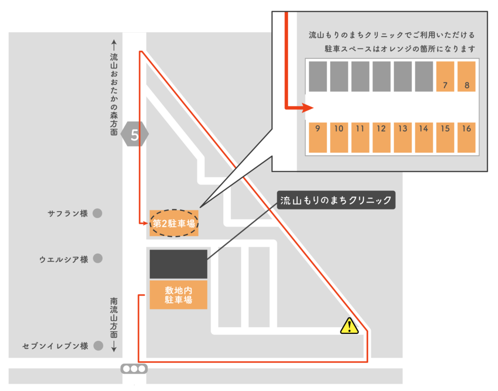 敷地内駐車場へのご案内ですので左折しないようご注意ください。