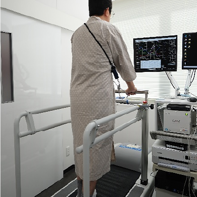 前項の運動負荷心電図よりは安全性が高いと考えられますが、検査前に十分な説明を受け、同意をした上で行ってください。負荷は徐々に増していきますので、できる所まで頑張っていただきます。呼気を測定していますので、検査中は異常な症状が出た場合を除きおしゃべりはできません。