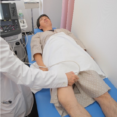 下腹部と両足の鼠径部から足首付近まで、動脈の狭窄の有無や静脈の異常などを観察します。100-200m歩くと足が痛くなって暫く休む(間歇跛行)のような症状がでる閉塞性動脈硬化症、下肢のむくみをおこす静脈機能の異常や深部静脈血栓症等の診断ができます。